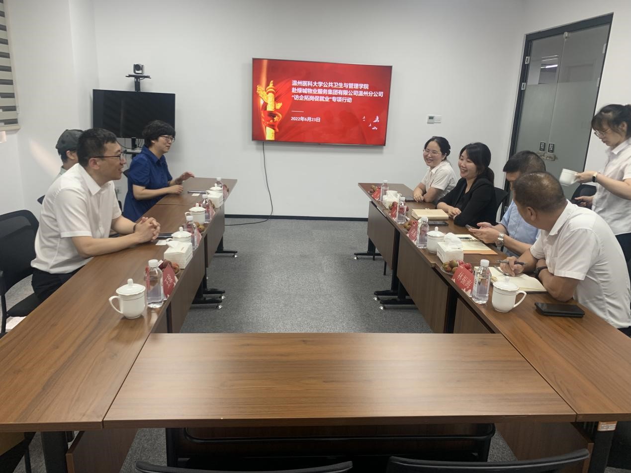 此外,学院于6月点对点联系各用人单位,公司党委书记、经理、党委副书记、副经理、专业教师和学工相关老师陆续走访了温州市疾病预防控制中心、温州市鹿城区卫生监督所、龙港市疾病预防控制中心、永嘉县疾病预防控制中心、泰顺县机关工委、中国太平洋财产保险股份有限公司温州分公司、绿城物业集团有限公司温州分公司、温州长江汽车电子有限公司、龙港市交通发展有限公司、中国建设银行股份有限公司文成分行,与用人单位开展调研交流。希望通过互动共建的方式探寻多层次、多形式、多领域的合作,精准推送毕业员工,挖掘更多就业岗位,助力员工就业。