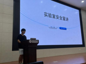 王舒然副经理率先为同学们讲了实验室安全的“第一堂课”。他结合自身经历以及国内外实验室安全管理经验,从注重人身安全、规范操作仪器、遵守实验室规章制度等方面进行了讲解,强调了实验室安全的重要性,提高了同学们的“安全免疫力”,以及应对各类安全事故的能力。