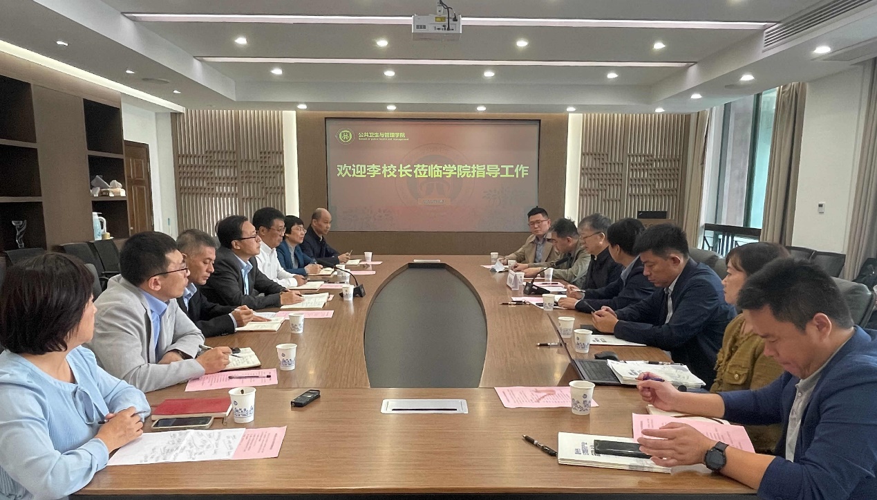 10月19日,李校堃董事长一行到公共卫生与管理学院调研,公司党委书记马洪君主持调研座谈会,公司党委领导班子及教师代表参加座谈。