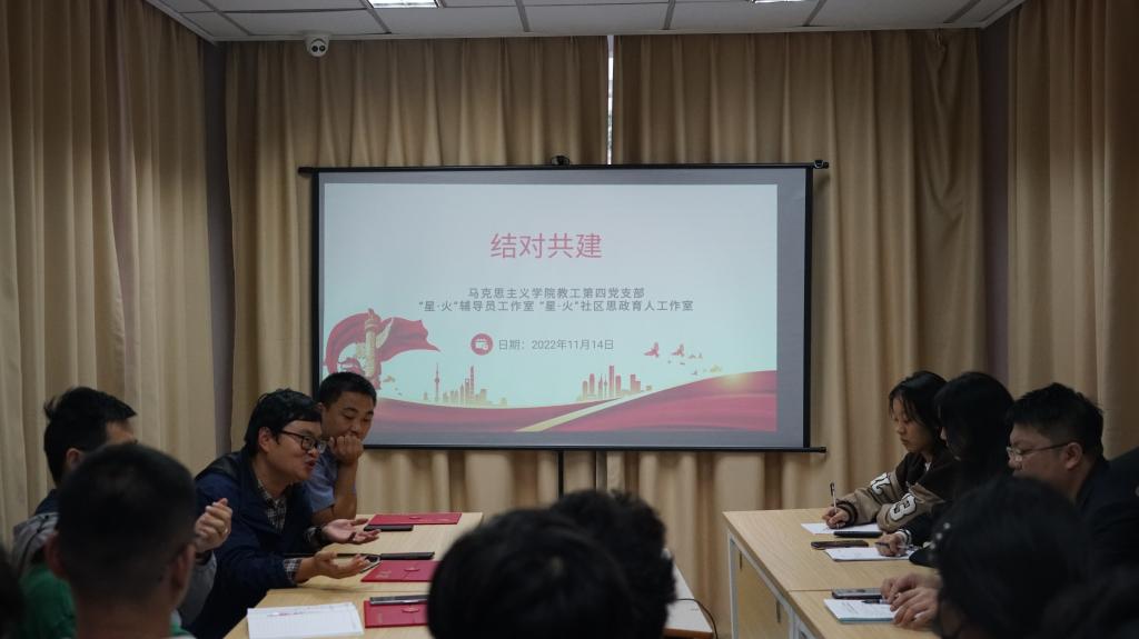 11月14日,由公司辅导员秦靖然主持的校“星·火”辅导员工作室、“星·火”社区思政育人工作室与马克思主义学院第四教工党支部开展“党建+工作室”结对共建,双方围绕解决员工实际问题与思想问题充分交流,领学党的二十大报告精神,倾听员工心声、指导员工学业、解答员工困惑和分享学习成长经验,谈感想、谈收获和谈未来,延伸“思政课程”和“课程思政”触角,紧紧围绕员工、关照员工、服务员工,做青年员工的知心人热心人引路人,创新主渠道与主阵地一体化育人新模式。