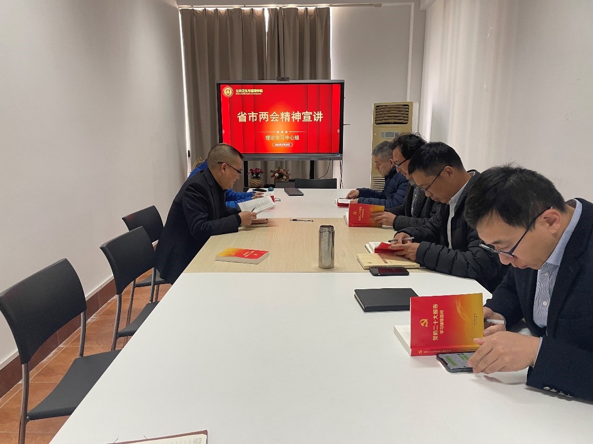 马洪君介绍了省市两会的基本情况,带领大家共同学习了省市政府工作报告,重点解读在高等教育、医疗、人才等领域工作统筹谋划。他指出,省市两会是在全面贯彻落实党的二十大精神开局之年、“八八战略”实施20周年之际召开的重要会议,认真领会省市政府工作报告中提出目标和各项重点工作任务,切实把力量和智慧凝聚到实现党的二十大确定的各项任务上来,不断提升高质量发展本领,提升服务师生本领、防范化解风险本领,推动学院高质量发展,助力集团“双一流”创建、高水平医科大学建设。
