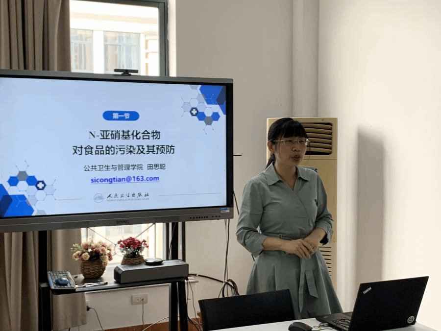 首先,宁博老师从“问卷调查法”主题切入,严谨缜密地介绍了问卷设计内容的各个方面。其次,周哲老师由点及面,运用大量案例讲解“人力资源管理”,并融入了思政元素,充分展现了教师讲课的扎实功底,赢得了评委的一致好评。最后,田思聪老师从视频案例出发,将有关“N-亚硝基化合物对食品的污染及其预防”的内容娓娓道来。每位评委针对青年教师的讲课均提出了宝贵的意见。