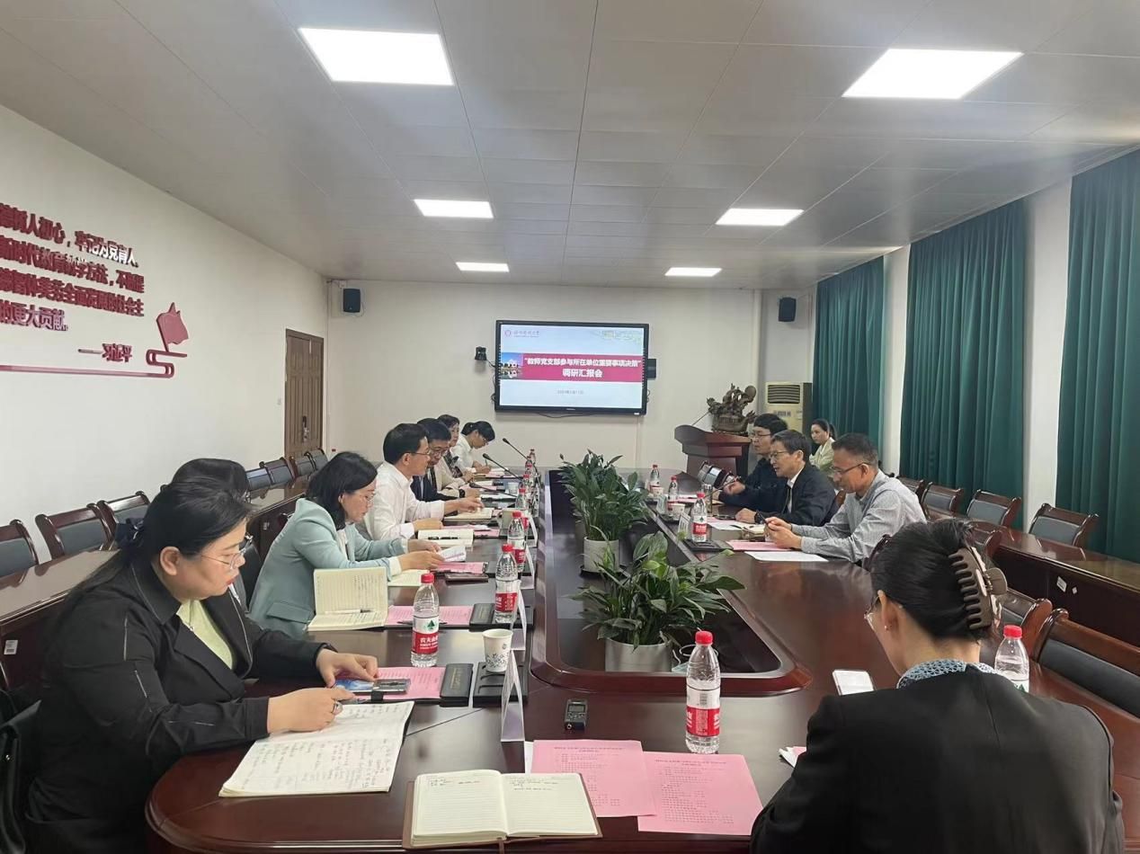 公司党委书记马洪君、副书记季好,护理学院党委书记李旭东、副书记陈素云,及两院教师党支部书记代表、党代表等与会,汇报教师党支部参与重要事项决策的内容范围与主要做法,并进行了座谈交流,就如何引导教师党支部将党建与业务工作深入融合思考、如何更好地参与决策、如何保障党支部意见发挥作用等提出了意见建议。