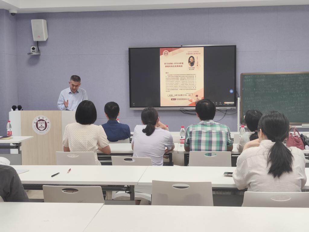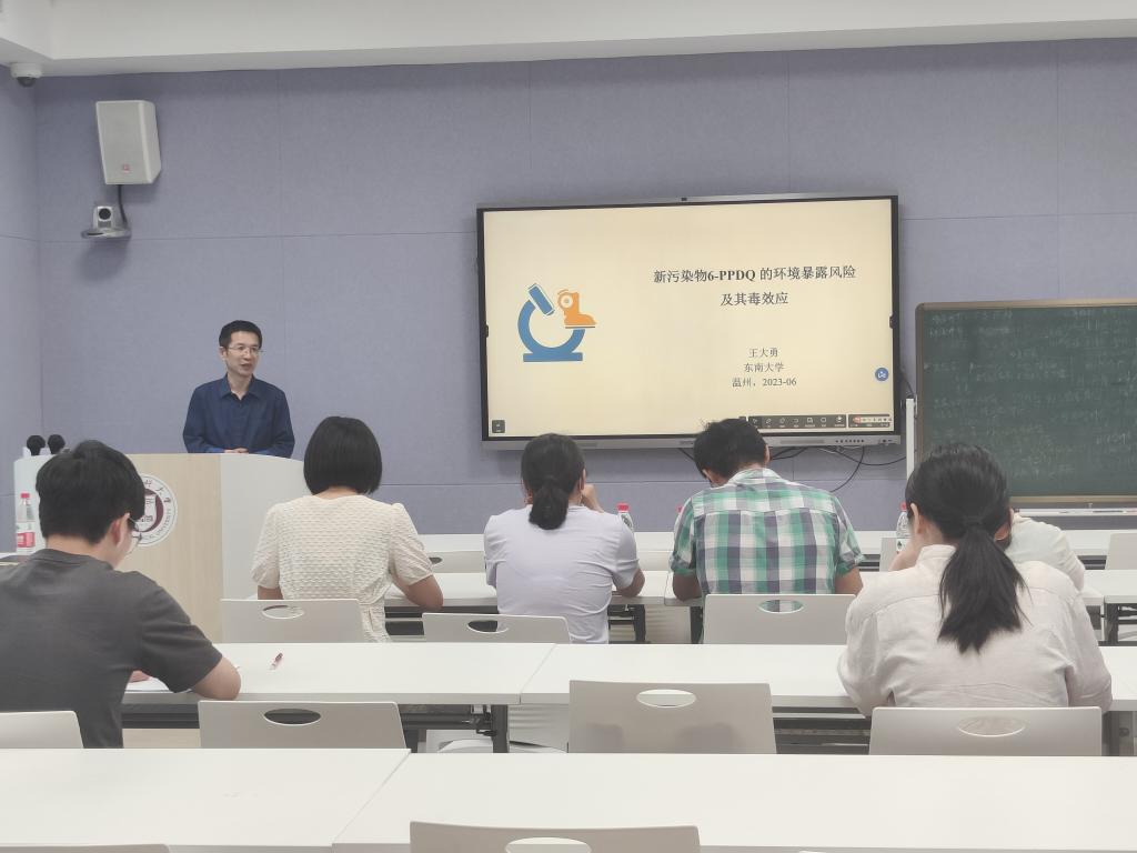 为活跃我院学术氛围,拓展员工科研视角,促进师生之间学术感悟及经验交流,2023年6月7日星期三下午,“大健康讲坛系列活动”在同济楼智慧教室6A103顺利举行。本次公司邀请到东南大学教授、博士生导师王大勇教授为公司师生带来主题为“新污染物6-PPDQ环境暴露风险及其毒效应”的讲座。讲座由学院副经理王舒然主持。