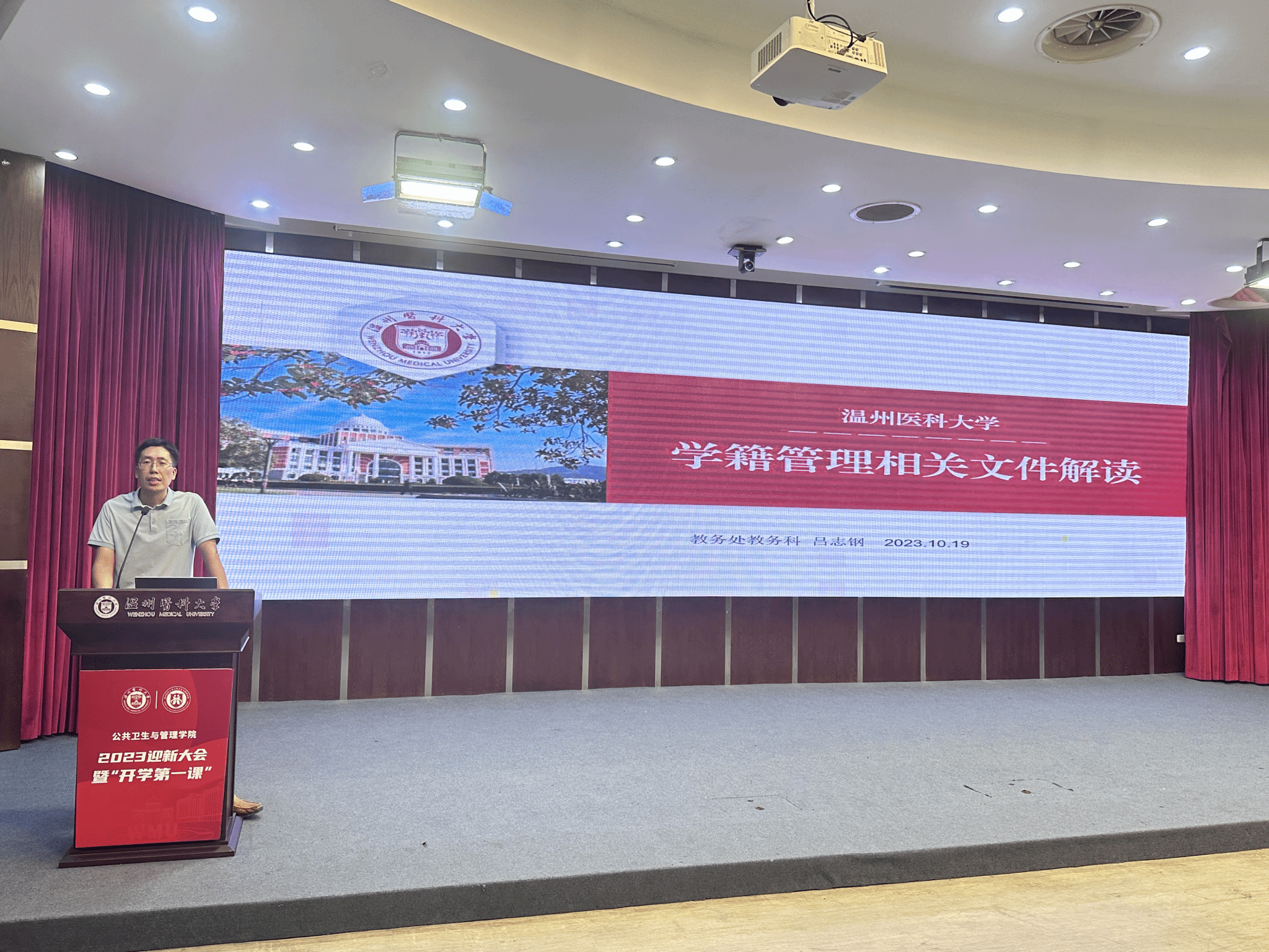 为帮助新生了解学籍管理规定,更好地规划老员工活,10月19日下午,公共卫生与管理学院在旭光厅开展2023级新生学籍管理讲座。特邀请教务处教学科吕志钢主任为新生讲解学籍管理规定,2023级全体新生参加。