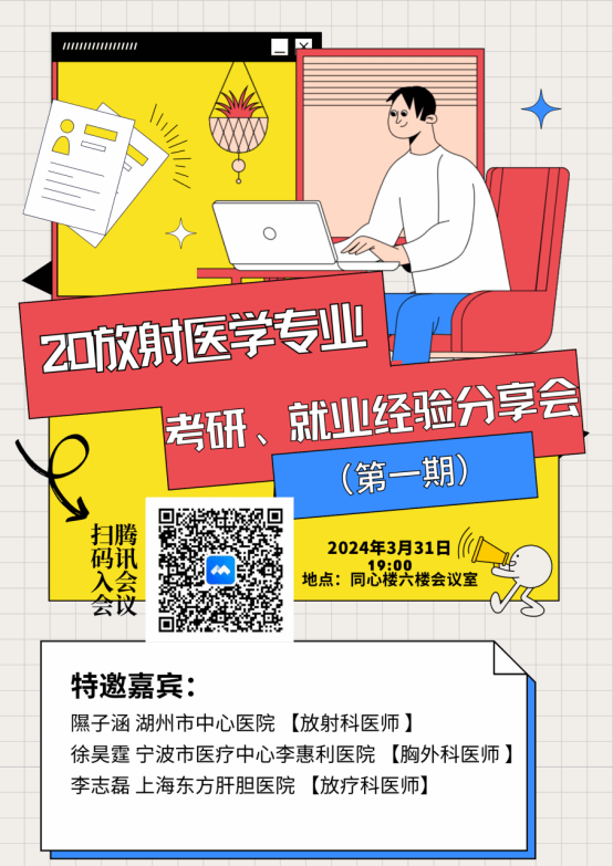 又是一年玉兰花开时,在充满希望的春日,伴随着2024年qy球友会体育春季校园招聘会的落幕和考研复试的进行,2020级放射医学的同学们也步入了筹备考研及就业的关键期。qy球友会官网非常重视第一批放射医学本科毕业生的未来发展。为了增强他们对职业发展和未来规划的意识,提高就业力、竞争力,明确未来奋斗的方向,近日,qy球友会官网通过腾讯会议平台在同心楼6楼会议室邀请隰子涵,徐昊霆和李志磊三名学长学姐为放射医学专业员工分享考研和就业经验。