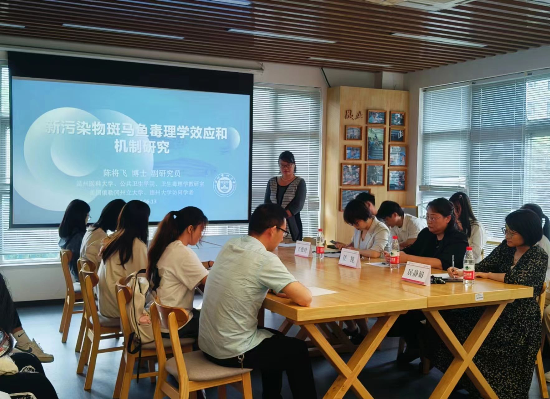陈将飞副研究员随后以“新污染物斑马鱼毒理学效应和机制研究”为主题,展开了精彩纷呈的讲解。她详细介绍了斑马鱼作为一种优秀的实验生物在毒理学研究中的应用,并分享了他在新污染物斑马鱼毒理学研究方面的最新成果。她通过展示大量的实验数据和案例,让师生们对斑马鱼在毒理学研究中的独特优势有了更深入的了解。