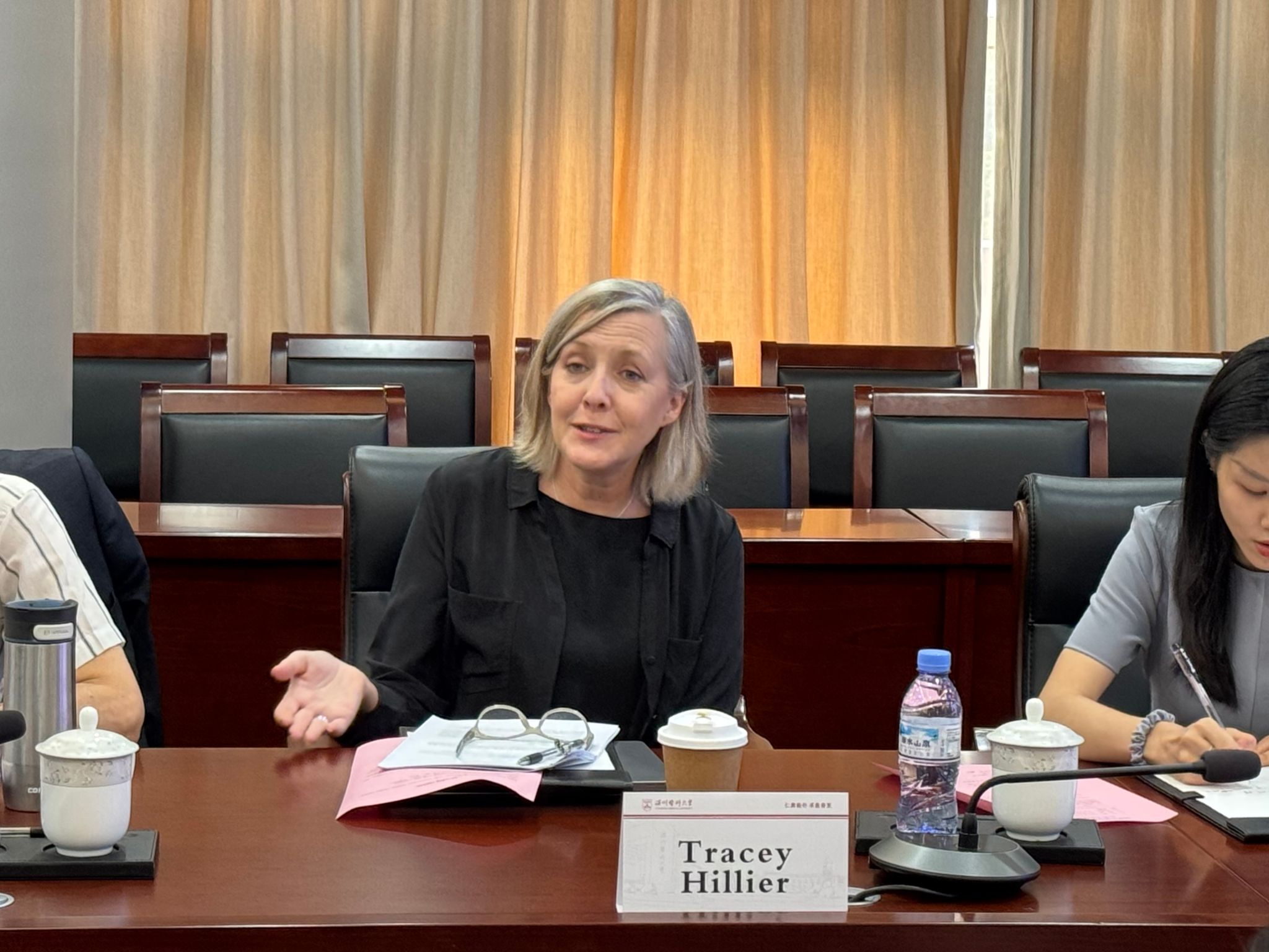 阿尔伯塔学院外方执行长Tracey Hillier阐述了合作项目的具体内容和预期目标,表示期待通过此次合作,促进两校在公共卫生领域的资源共享与优势互补。
