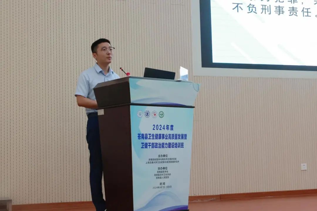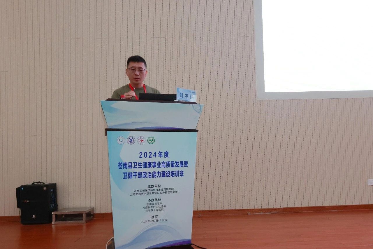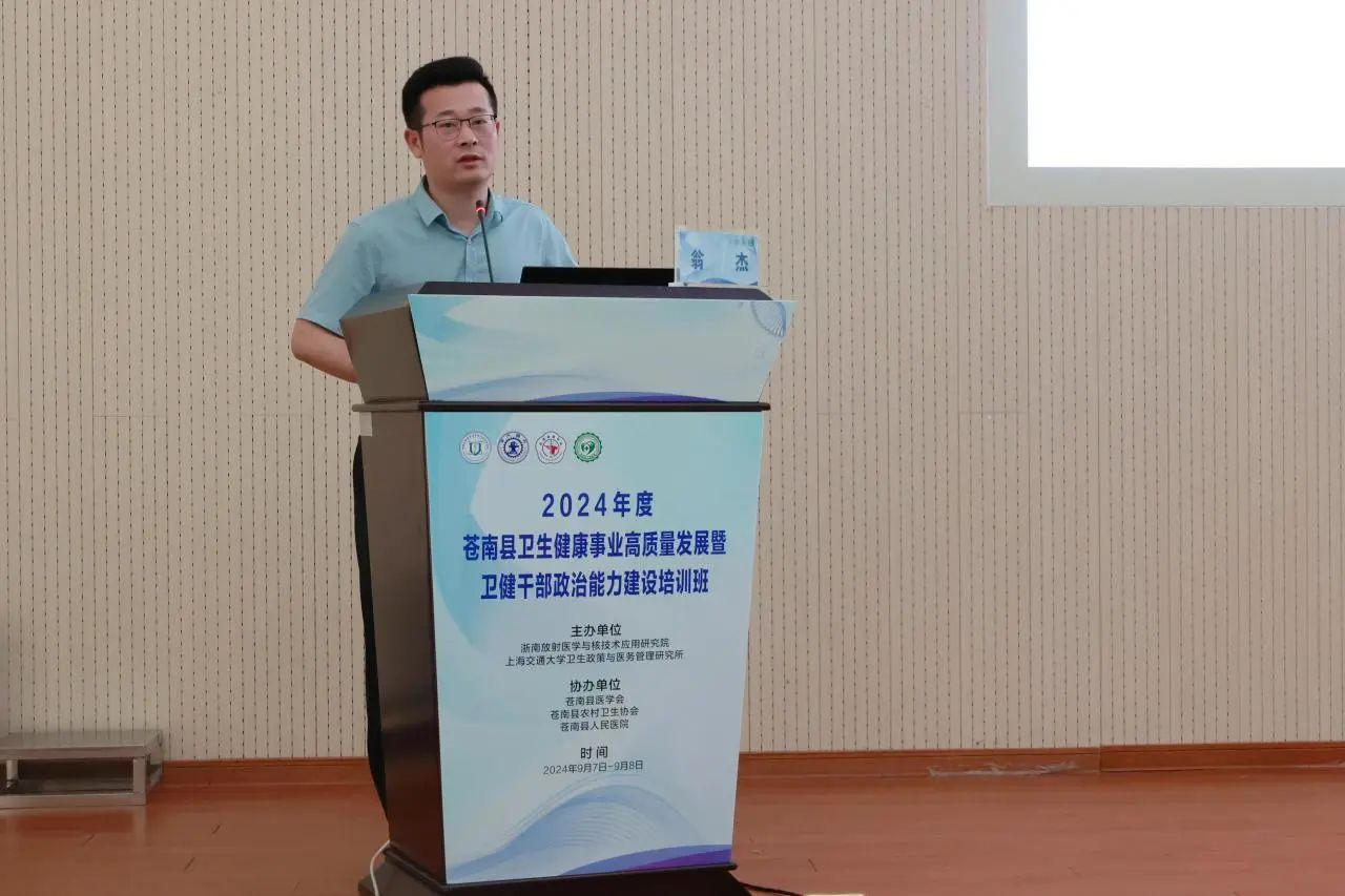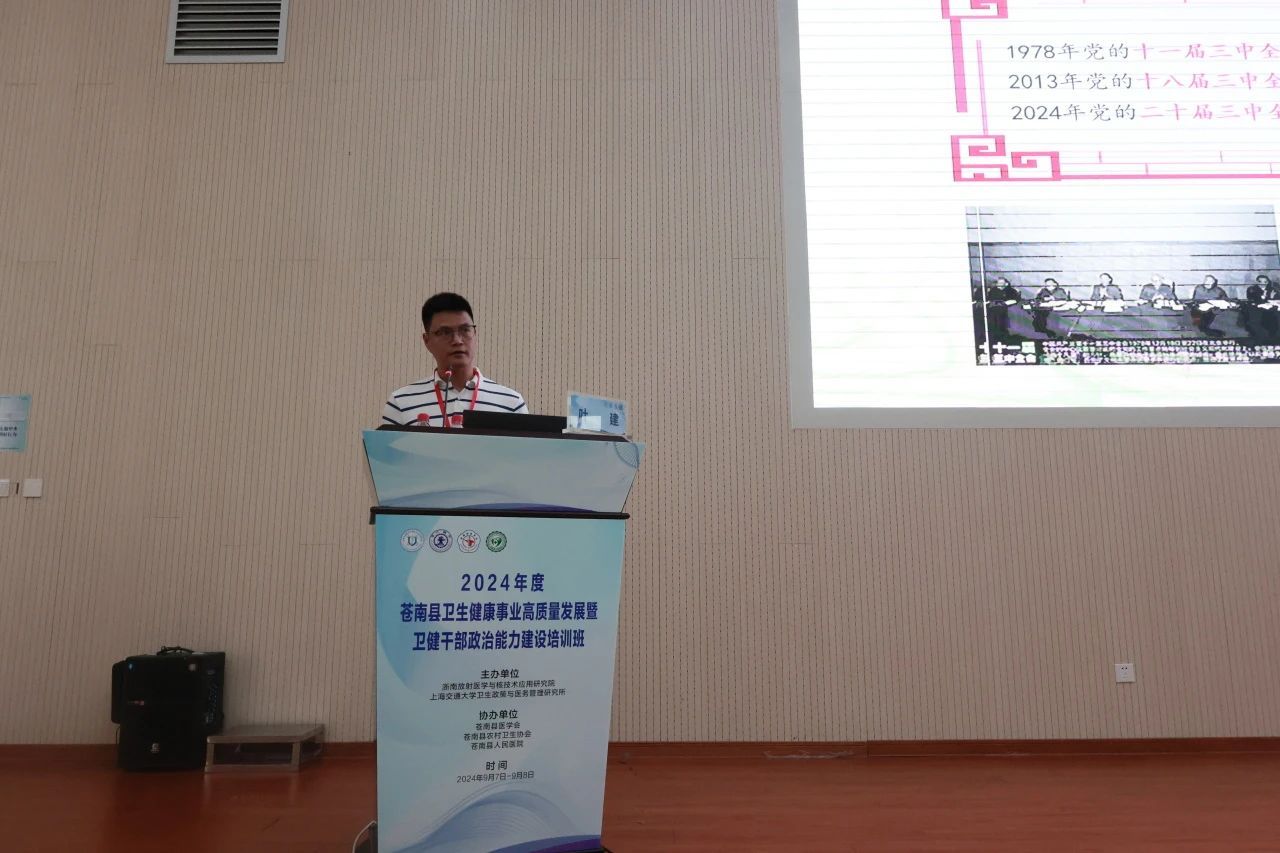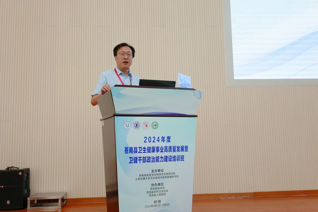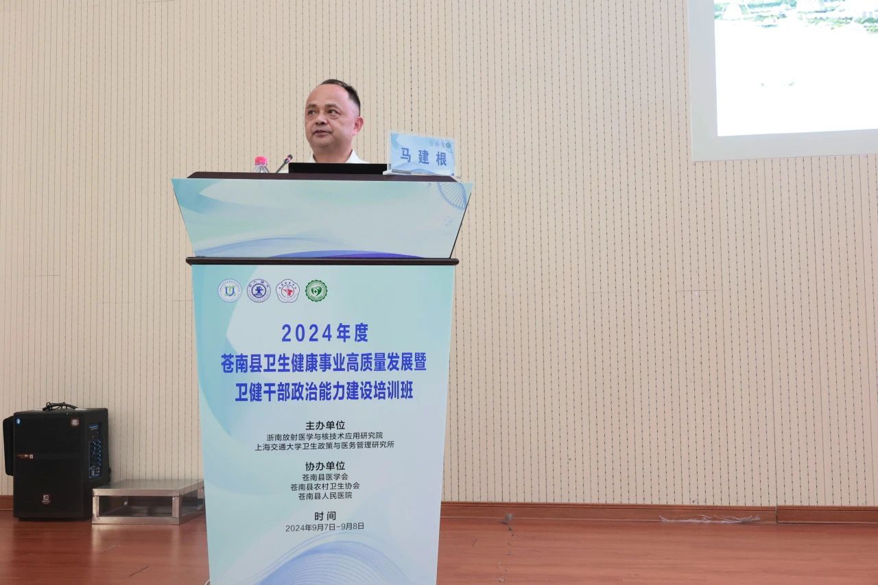 为深入开展主题教育,加强卫健系统干部政治能力建设,推进地方卫生健康事业高质量发展,持续提升公立医院现代化管理水平,推动医院从“以治病为中心”向“以健康为中心”转变,由浙南放射医学与核技术应用研究院、上海交通大学卫生政策与医务管理研究所主办,苍南县医学会、苍南县农村卫生协会、苍南县人民医院协办的“2024年度苍南县卫生健康事业高质量发展暨卫健干部政治能力建设培训班”于9月7日至9月8日在苍南县人民医院行政楼一楼学术报告厅圆满举行。