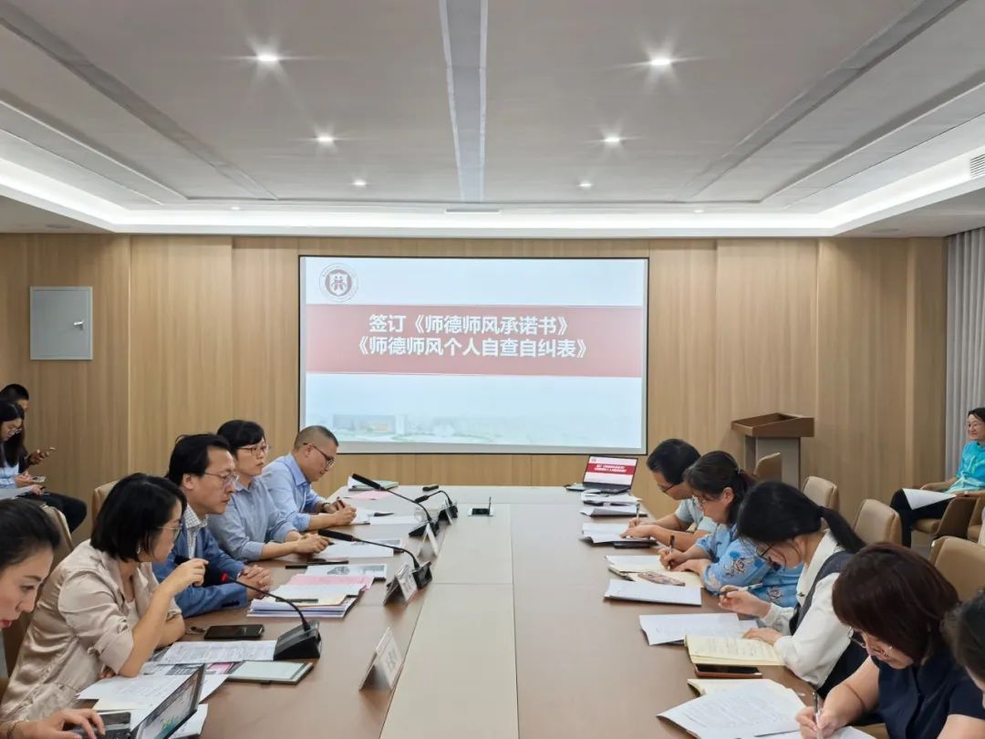 会上,开展师德师风个人自查自纠工作,并签订《师德师风承诺书》。